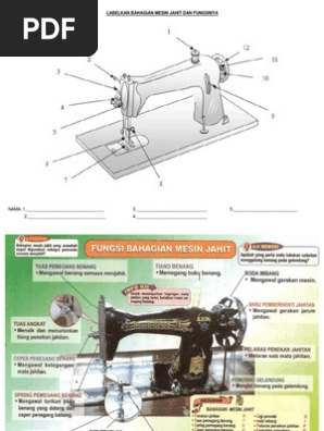 Bahagian Mesin Jahit Dan Fungsinya - Bahagian Dan Fungsi Mesin Jahit Pdf Document - Alas mesin menjadi bagian yang paling bawah.