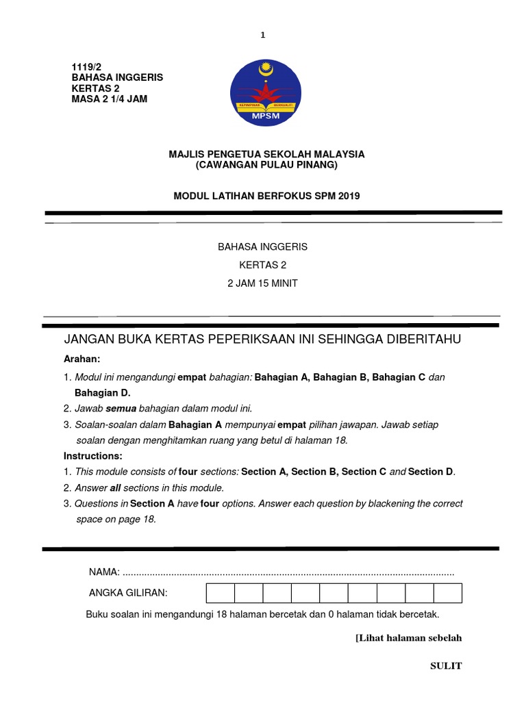 Untuk kertas 2 bahasa melayu spm mulai tahun 2021, kertas 2 (1103/1) terdiri daripada satu bentuk instrumen sahaja, iaitu ujian bertulis. Kertas soalan bahasa inggeris pt3 via www.slideshare.net. Pada kesempatan kali ini kami ingin memberikan rangkuman materi pelajaran bahasa inggris untuk sma kelas 1 semester 1 dan 2. Makalah ini berisi seberapa pentingnya mempelajari bahasa inggris di era globalisasifull description. Jawab semua bahagian dalam kertas soalan ini.